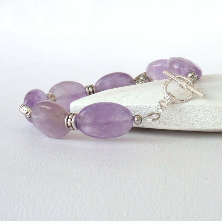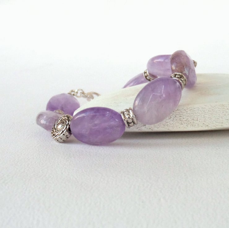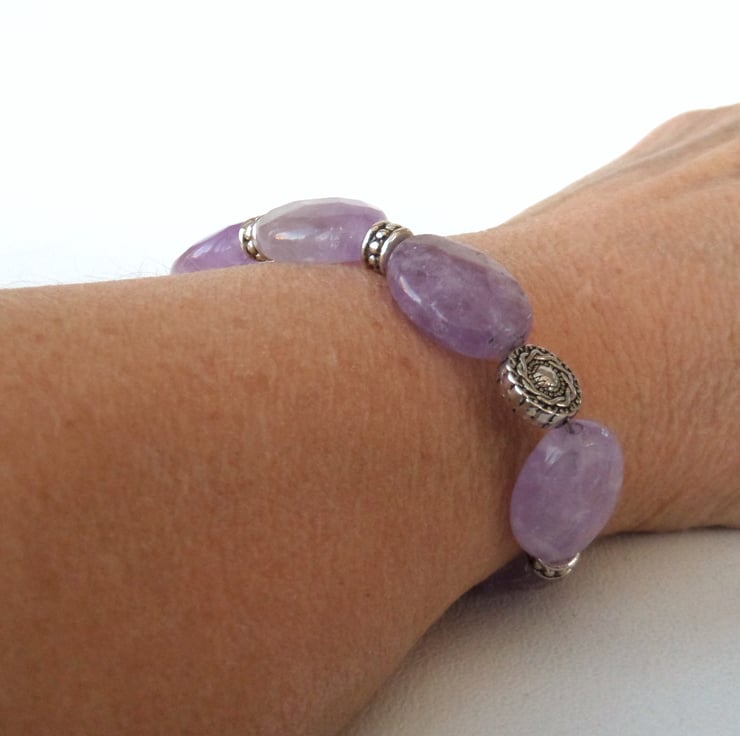 I have added decorative tibetan silver beads between the amethyst ovals to add extra interest and originality to the bracelet.