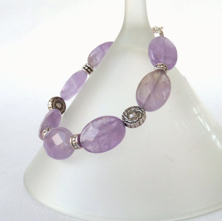 A beautiful and unique amethyst bracelet, created with stunning lavender amethyst faceted ovals.