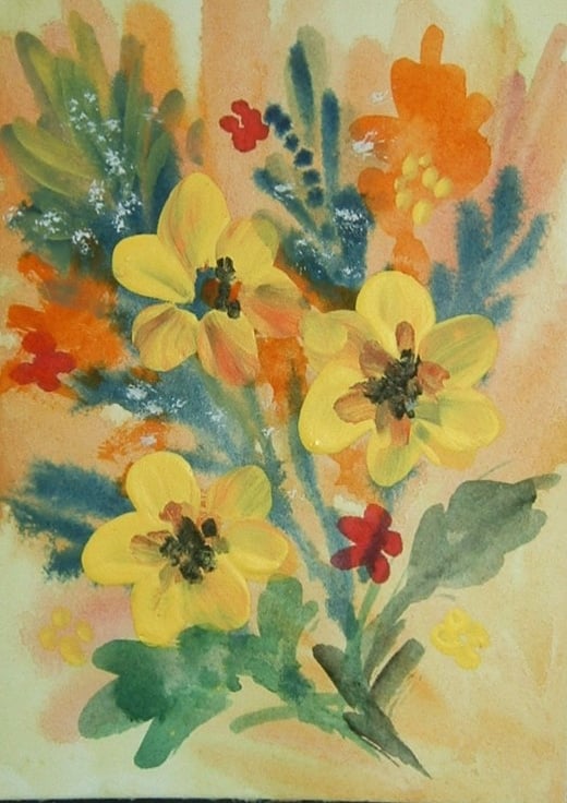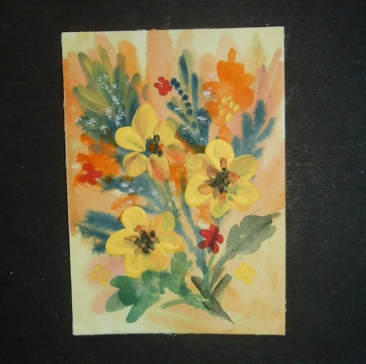 The beautiful Spring flowers have been created using both watercolour and acrylic paints.