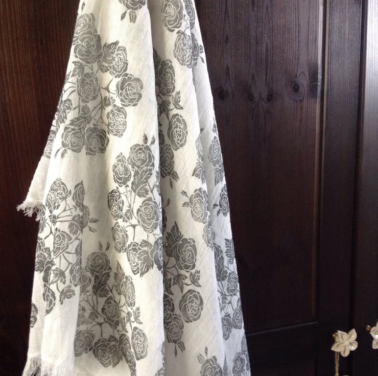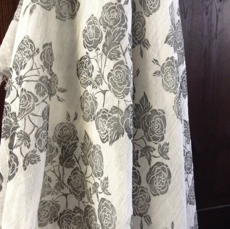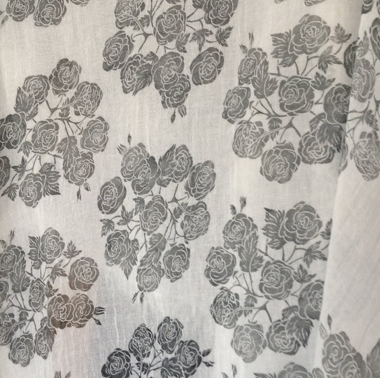 The rose design has been printed in Paynes Grey but it had a more diluted black effect, looking very vintage in style.