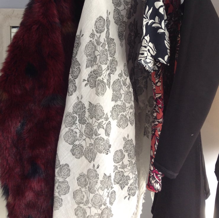 My rose cluster design has been printed all over this scarf in a random order, creating a full pattern that bursts with enthusiasm.