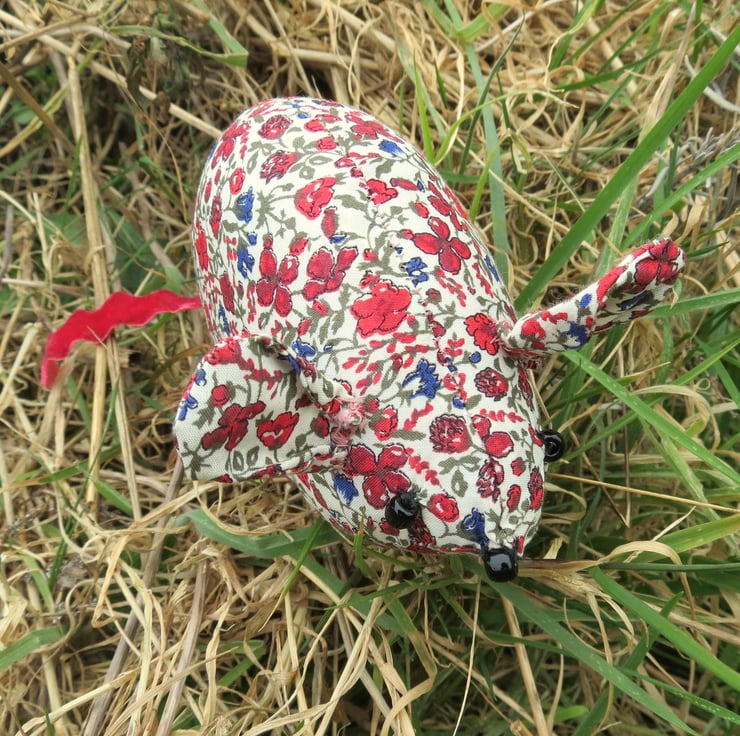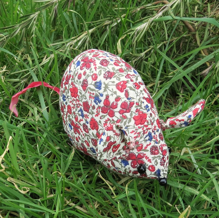 This field mouse pin cushion measures 10.5cm in length,
