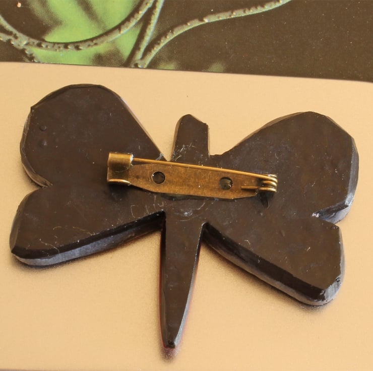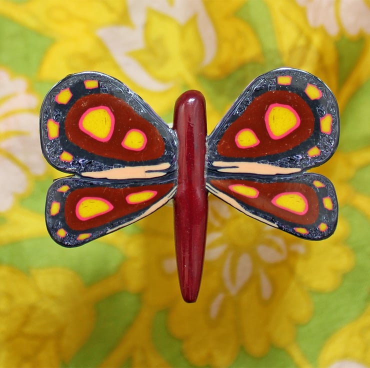 A lovely brooch of rare and beautiful wildlife re-interpreted in intricate polymer clay work. This is a unique work and would make a charming adornment. She measures 6cm wide by 5cm long and is about 8mm thick. Made from polymer clay and fitted with a metal pin