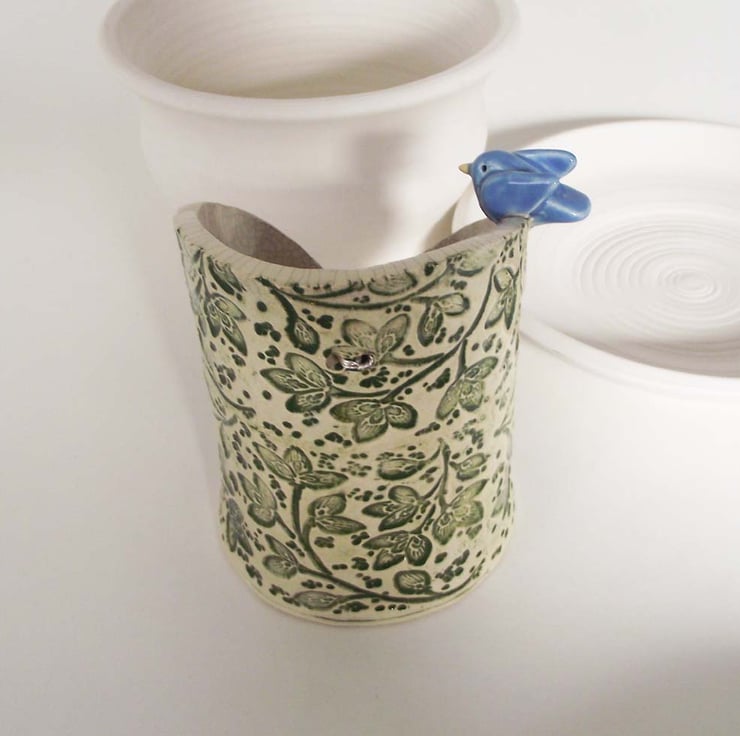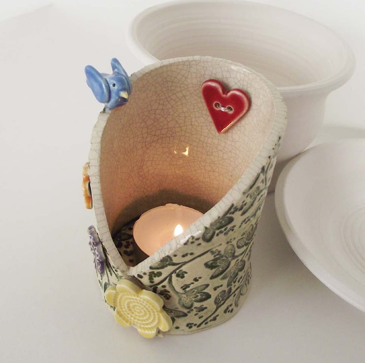 It is then glazed with a vintage style crackle glaze and fired again to a top temperature of 1100 degrees, so it is nice and strong.