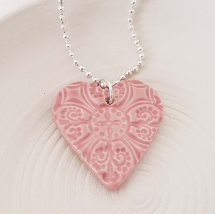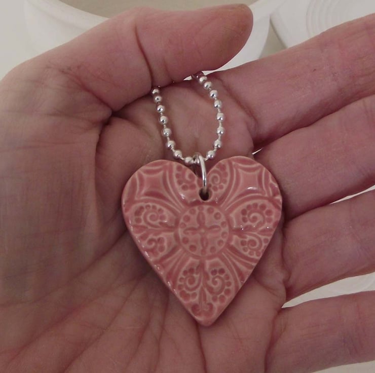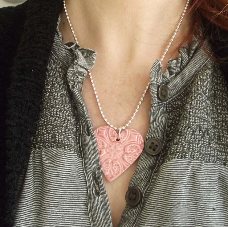 This cute little pendant is made from white earthenware clay and glazed on both sides with a bright, glossy glaze.