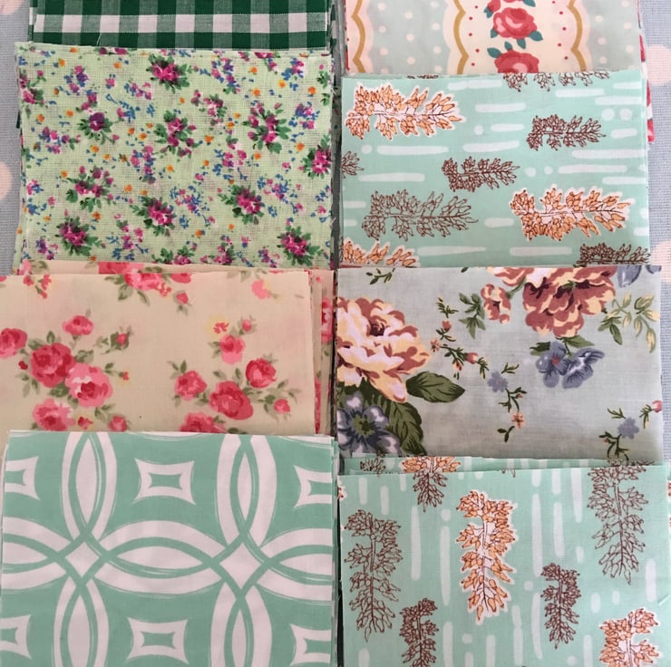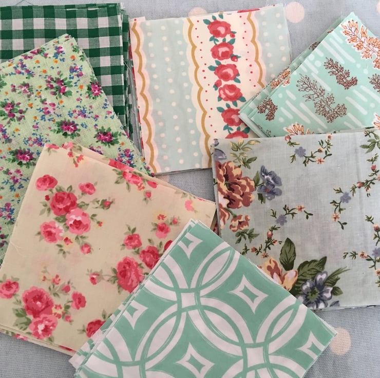 A pretty selection of 50 x 4" Green cotton fabric squares
