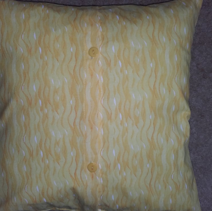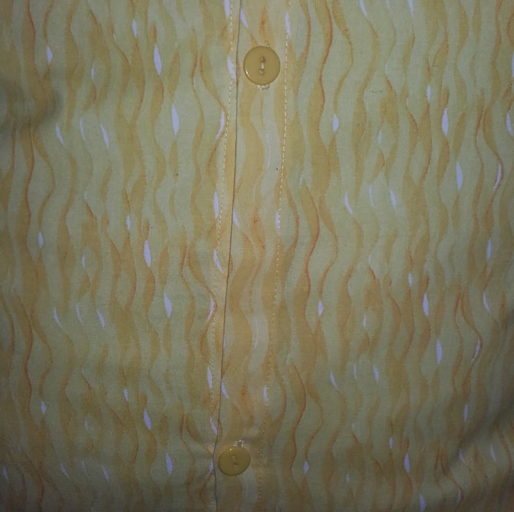 The coloured fabric is bright yellow and green, there are two buttons on the back.