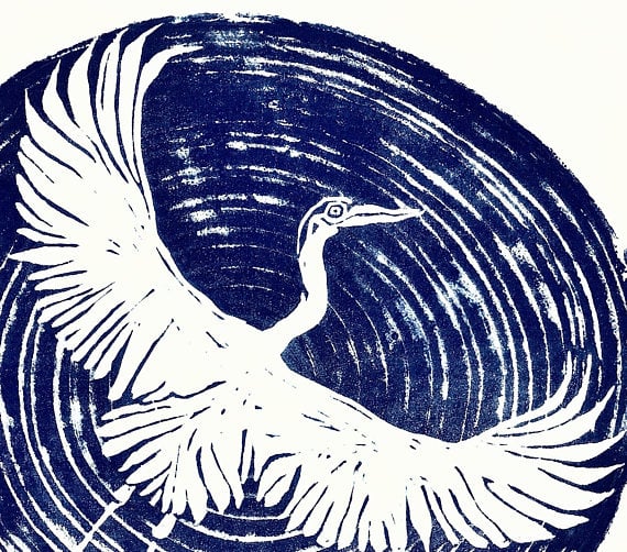 'Heron' Woodblockprint, 2015