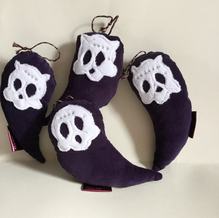 A Skull ghost bird handmade plushie for decorating your room or nursery.