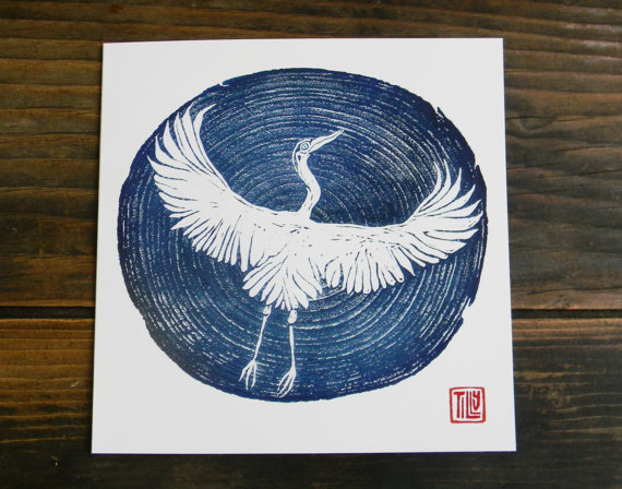 Traditional Japanese woodblock printing often uses imagery of a heron / crane. When I found this piece of wood I thought it looked like ripples in a pond, and decided to carve into it a heron to look as if it is flying above the water.