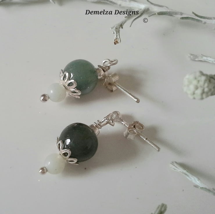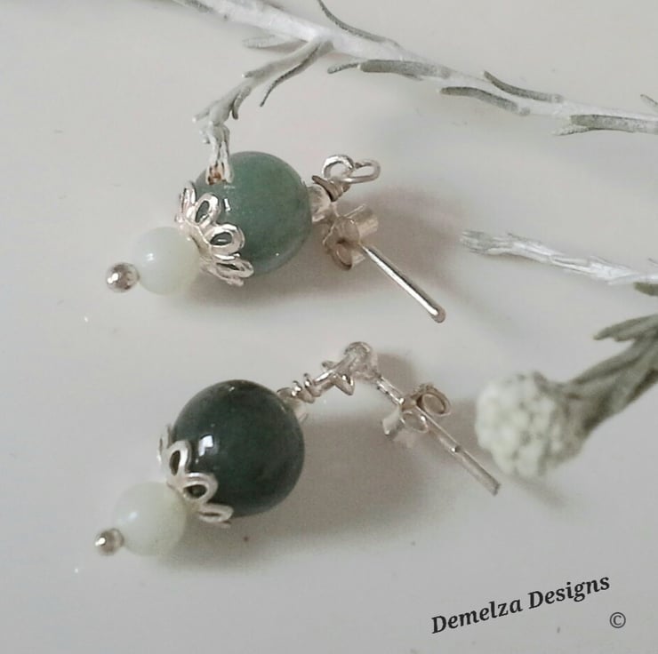 These delicate drop stud style earings have been designed and hand crafted in Cornwall using genuine 7mm round cut jade and 4mm round cut Jadeite gemstones. For those who have knowledge and are interested in gemology will know the value and rarity of these gemstones which command very high prices within the jewellery industry world wide. In order to keep the costs down for collectors I have created them using all sterling silver components. Genuine natural untreated jadeite is now difficult to obtain, it's price having increased over the past few years. If seen at a cheap price or in other colours it has undertaken treatments to enhance it, thus reducing it's value and price considerably.