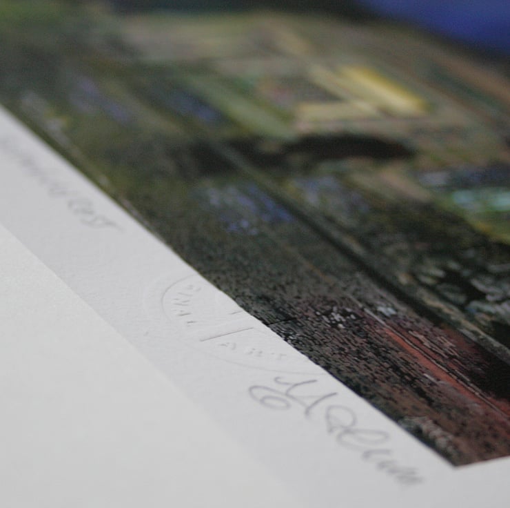 Signed, stamped, hand titled, limited edition, mounted, Giclee print of original illustration by Mark McPhelim.