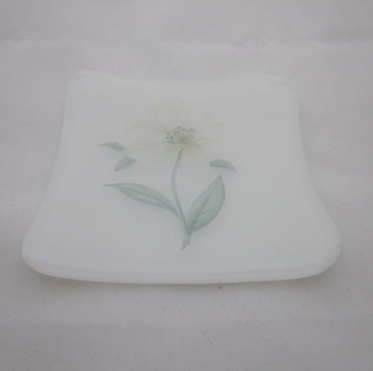 This square trinket bowl has a white base with a daisy design and is approximately 10cm across. Though designed as a trinket bowl, it might also make a good soap dish. An ideal present for someone you love.