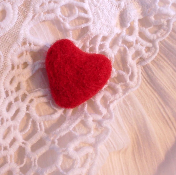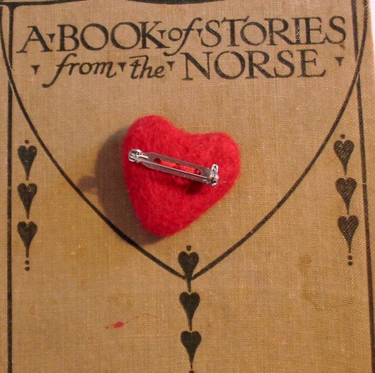Made from pure Merino wool needle felted into a heart shape and finished with a brooch pin stitched firmly to the back.