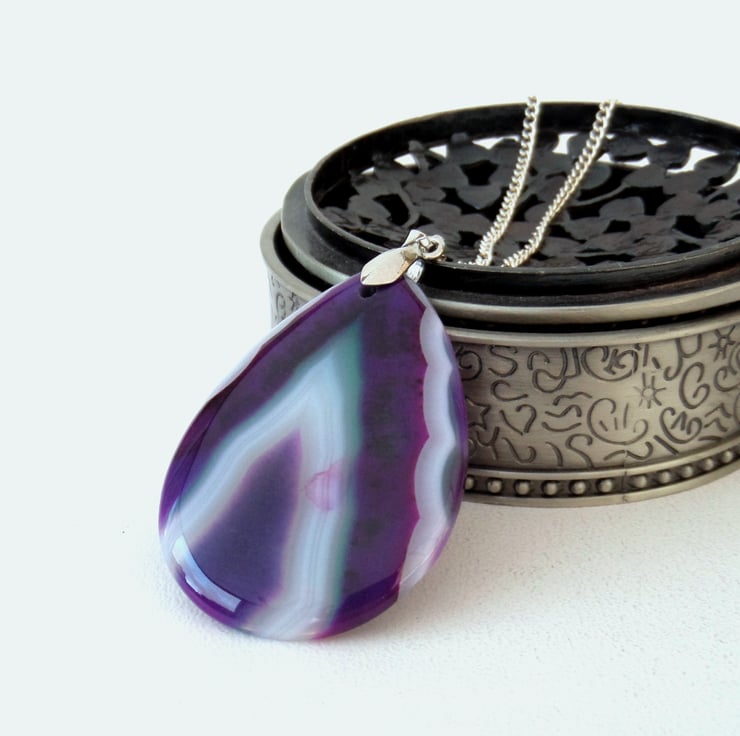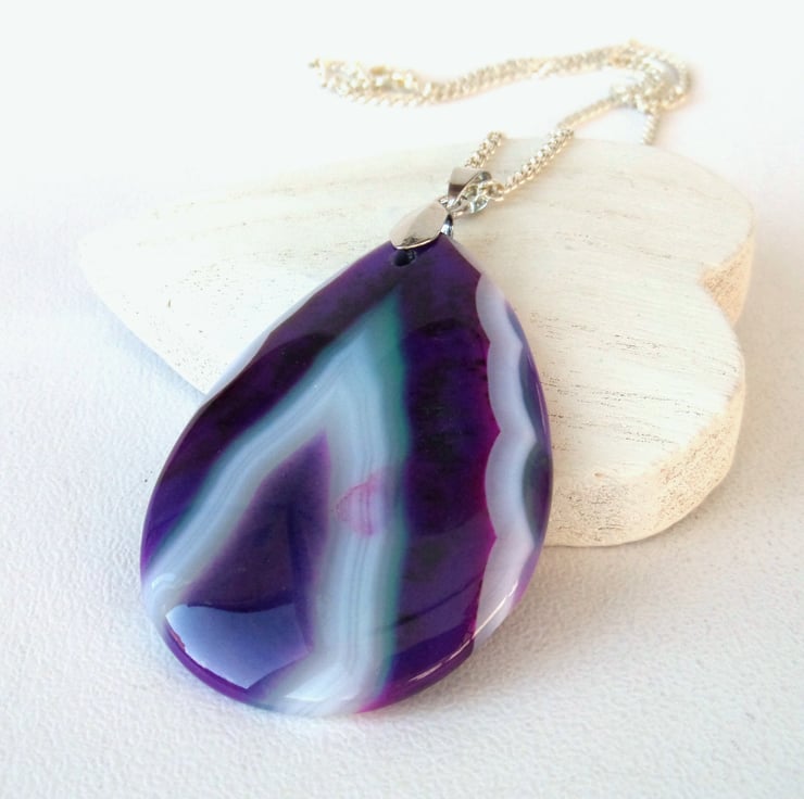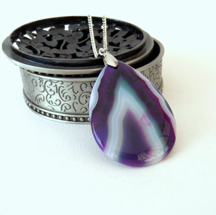 A stunning agate pendant necklace, with the most beautiful markings in purple, white and a little green.