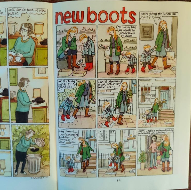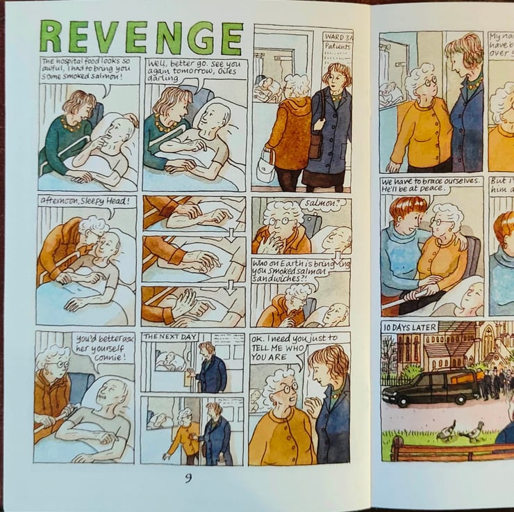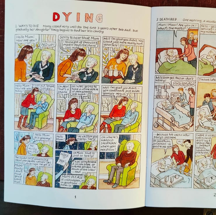 This is a 7 x 10in, 16 page, full colour zine containing four short graphic stories - 'Dying', 'Tarquin', 'Revenge' and 'New Boots'.