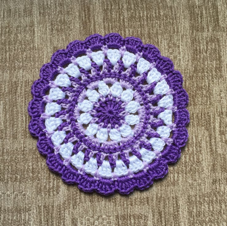 I have crocheted this lovely Mandala style mat in a good quality 100% cotton yarn which is machine washable in a warm 40degC medium wash, dry flat, do not tumble dry.