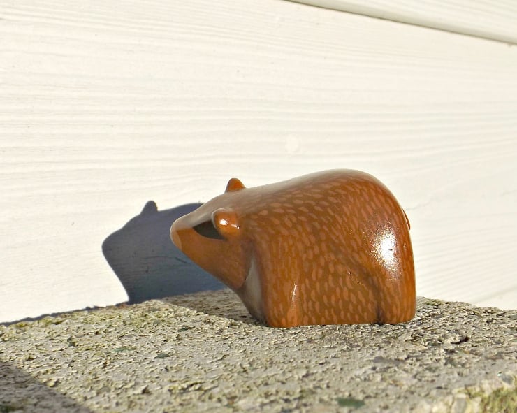 This figure is handmade using Polymer Clay and has then been painted and varnished. A OOAK animal he would look great on a shelf or mantel as well as being a companion totem.