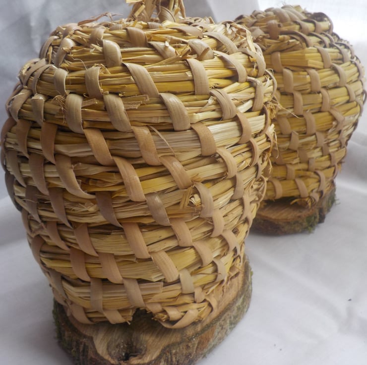 Traditional 'Skep style' small scale beehives are beautiful items for the home. Also, very useful and can be used as honey pot, jar covers. Making a lovely and quirky addition to the breakfast table. Also, a fantastic, memorable, unique gift. It is made to order especially for you.