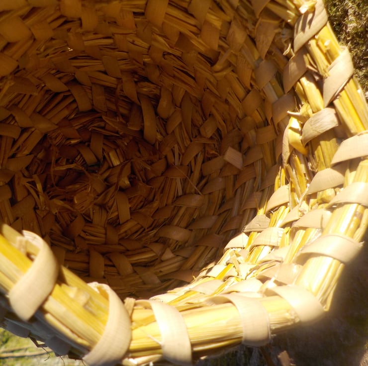 The full size bee-skeps have been very popular. The small 'skeps' were a natural progression to make for people who would like to own a skep but, do not have the space for a full size one. It canbe used as a quirky honey pot cover to add some character to mealtimes.