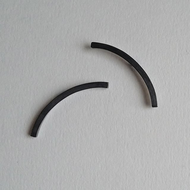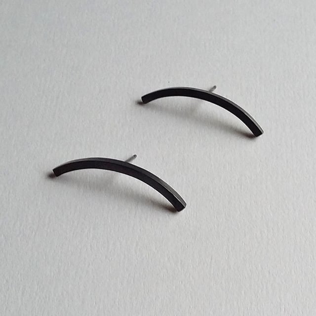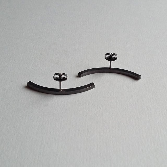 These wonderful long curved bar stud earrings have been handmade in sterling silver and to give a dramatic look have been oxidised.