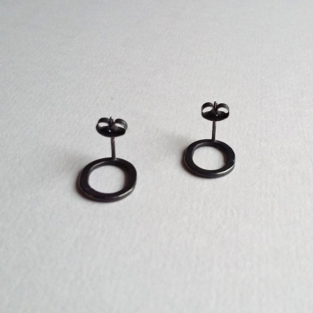 These fantastic hand-crafted studs are made from hammered sterling silver and have been oxidised to create a matt black finish.