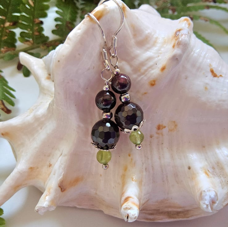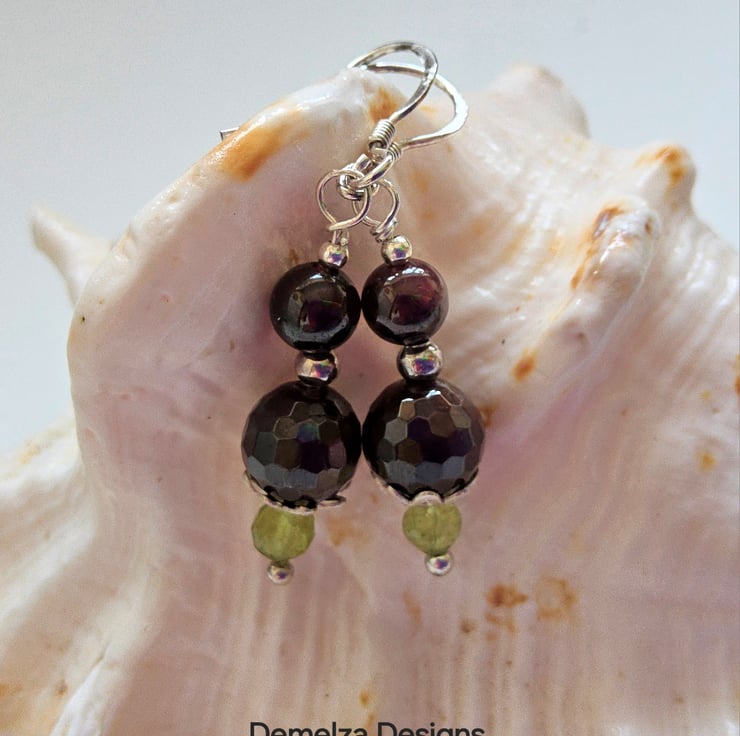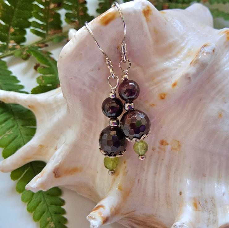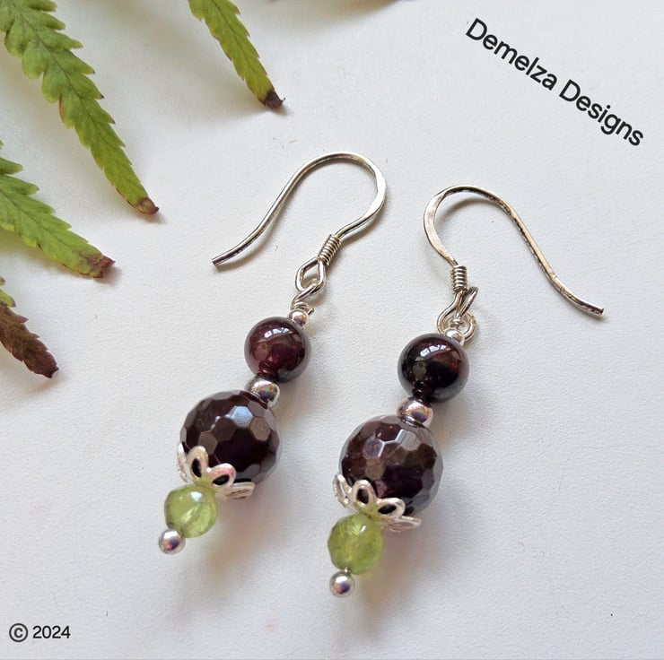 Peridot & Deep Plum Red Indian Garnet Sterling Silver Earrings