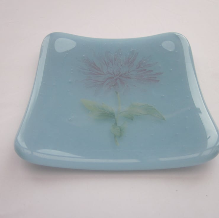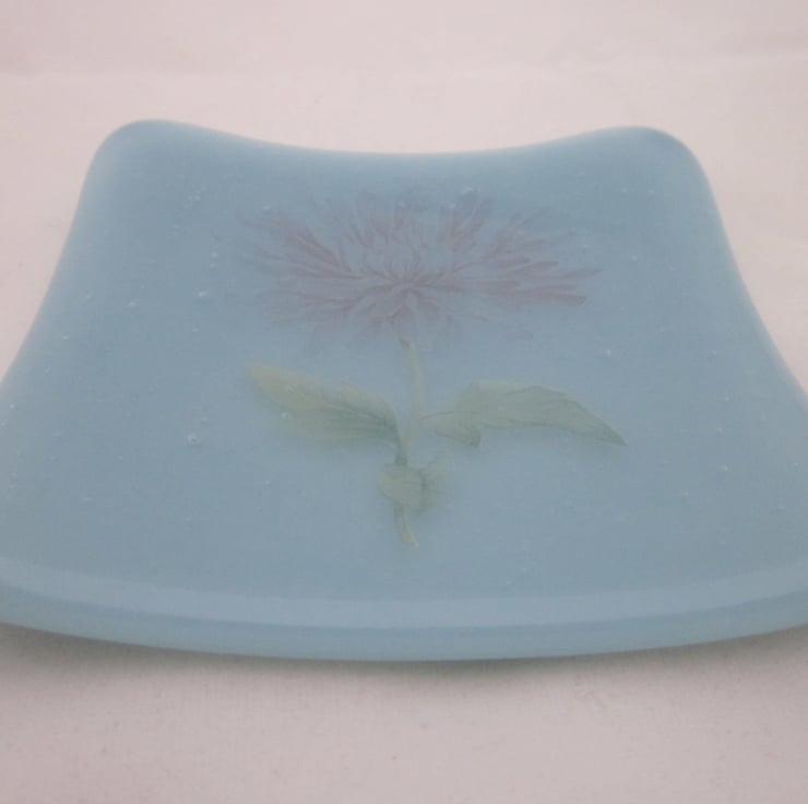This square trinket bowl has a porcelain blue base with a pink chrysanthemum design and is approximately 10cm across. Though designed as a trinket bowl, it might also make a good soap dish. An ideal present for someone you love.