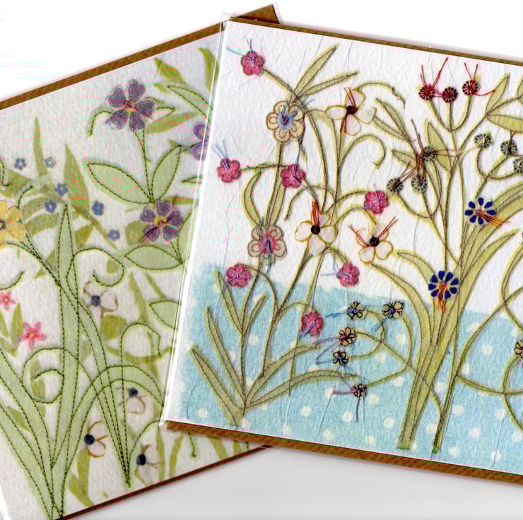 Two Flower Garden design blank greetings cards which would be perfect as a thank you card or birthday card.