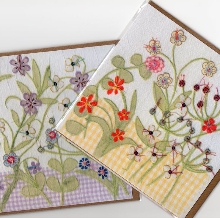 Two blank greetings cards professionally printed from an original Daisy Florence Design 'Flower Garden' artwork.