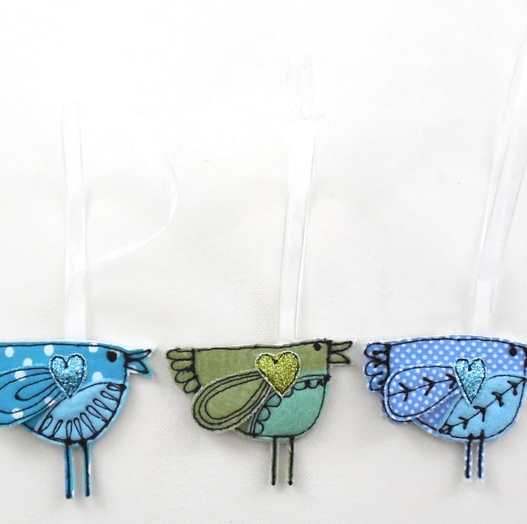 Please note this listing is for one Baby Birdie, I have listed three for ease. When ordering please state your birdie of choice (photograph one from left to right): 'turquoise spot', 'green', or 'blue spotty'.