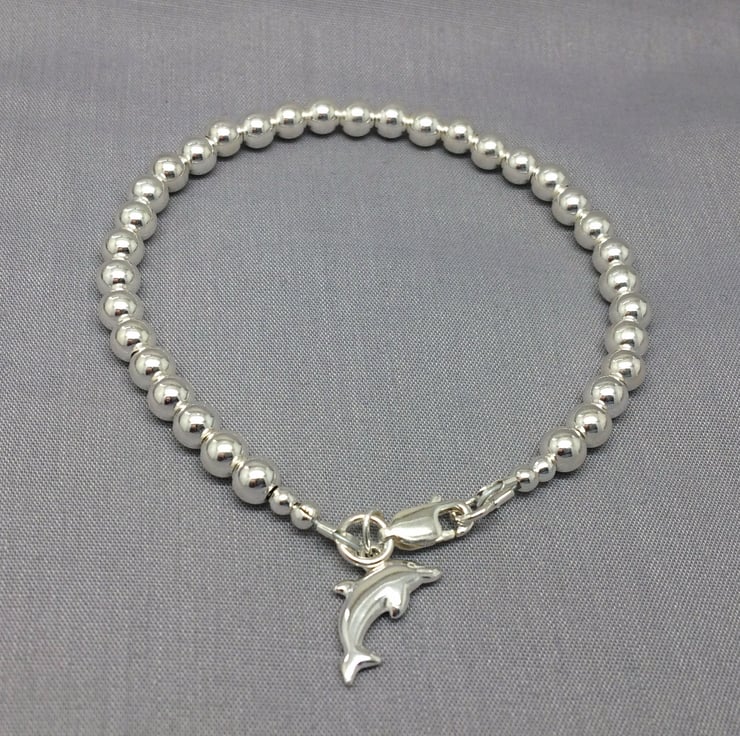 Dolphin Charm Sterling Silver Ball Bracelet - I made the bracelet with 925 Sterling Silver highly polished seamless 4mm beads and attached the Sterling Silver 16mm Dolphin Charm and finished the bracelet with a Sterling Silver lobster clasp.