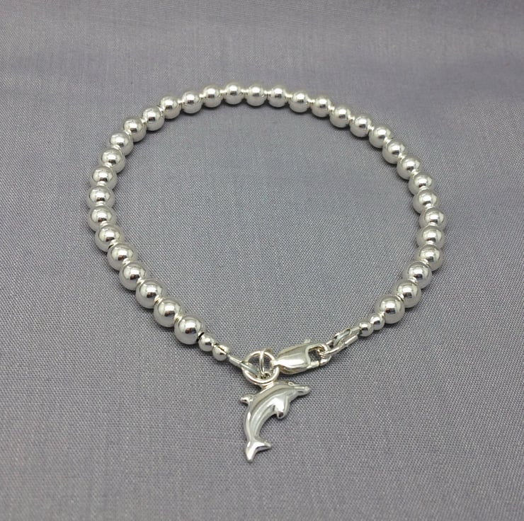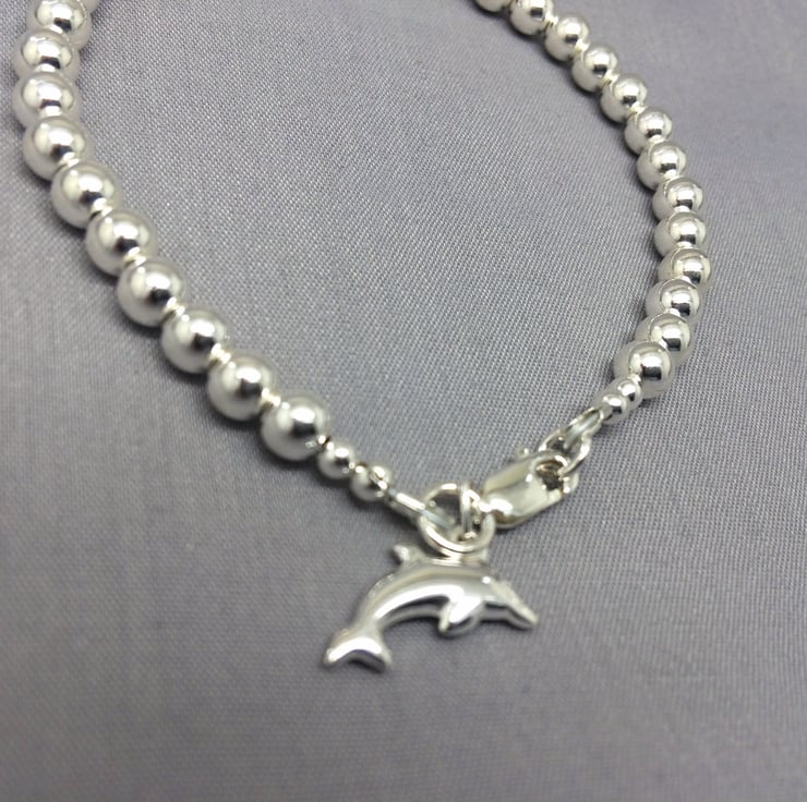 Dolphin Charm Sterling Silver Ball Bracelet - I made the bracelet with 925 Sterling Silver highly polished seamless 4mm beads and attached the Sterling Silver 16mm Dolphin Charm and finished the bracelet with a Sterling Silver lobster clasp.