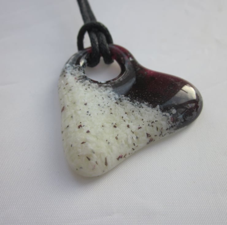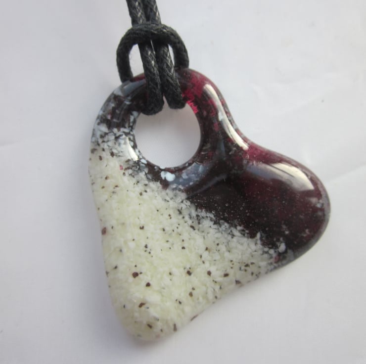 This pendant is tied with black cotton cord cord for informal daily wear. Please note that this pendant does not come with a silk ribbon like some of my hearts.