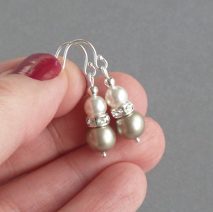 The taupe pearl earring drop measures 2.4cm / 1 inch from the bottom of the ear hook. The drop measures 8mm wide at the widest point. All fittings used are Sterling silver. All of my ear hooks are sold with plastic stoppers to ensure they stay firmly in your ears.