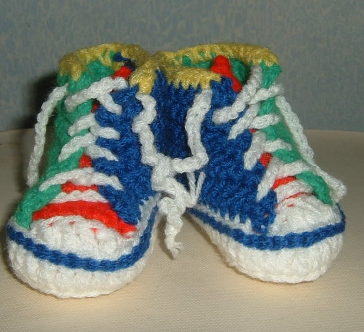 Created to my adapted version, they have been crocheted in quality acrylic yarn and I would estimate them to fit 6-12 months in size.