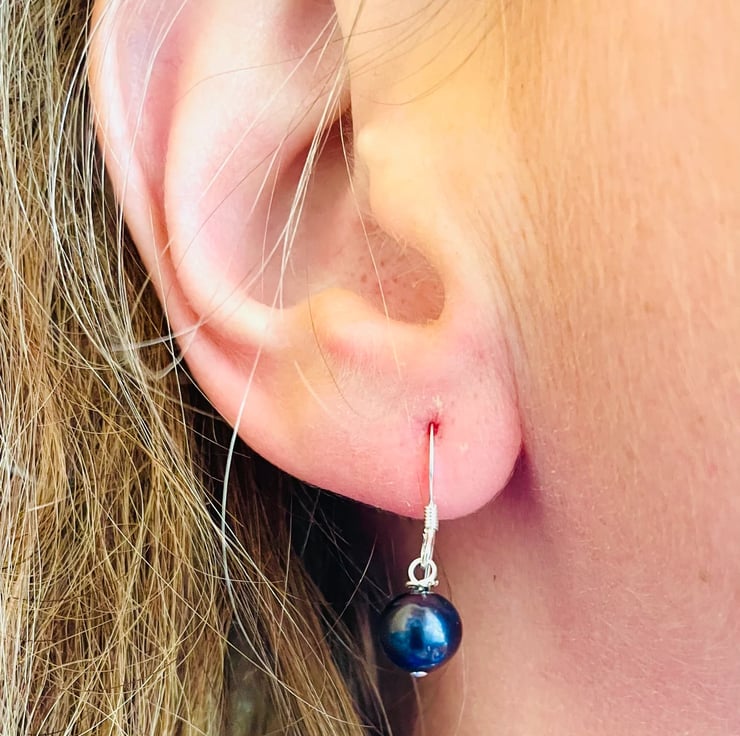 Midnight Blue Freshwater Pearl Earrings. 8mm freshwater pearls, a grade a pearl. Sterling silver earwires. Free gift box. Stunning earrings! I can make multiples of these earrings so please do ask, and I offer 15% off 3 or more!