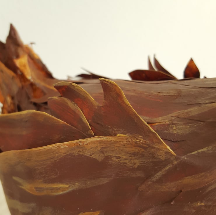 The sculpture has been created using several layers of paper and tissue applied to a styrofoam shape for the body and a fibre pulp mix for face, head and legs.