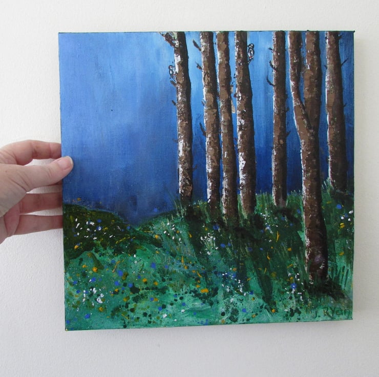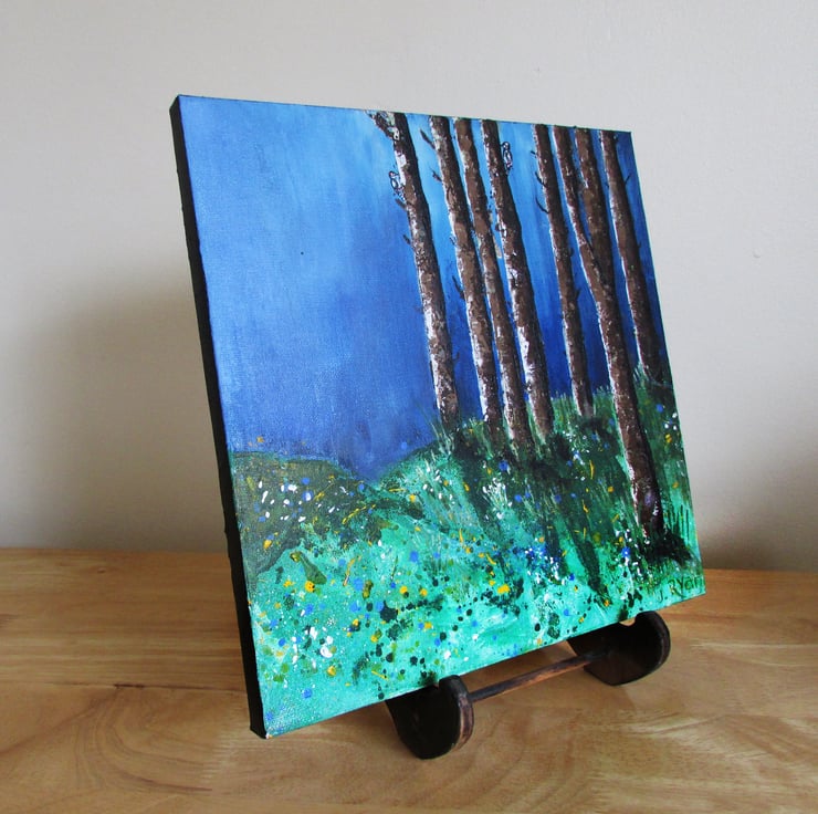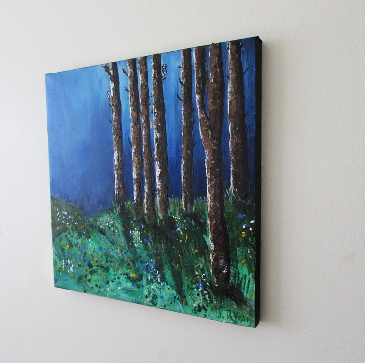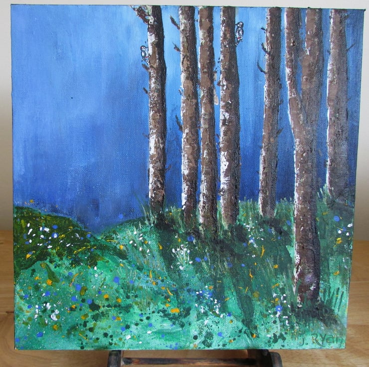 Trees in the Woods, a painting in acrylic on stretched canvas.