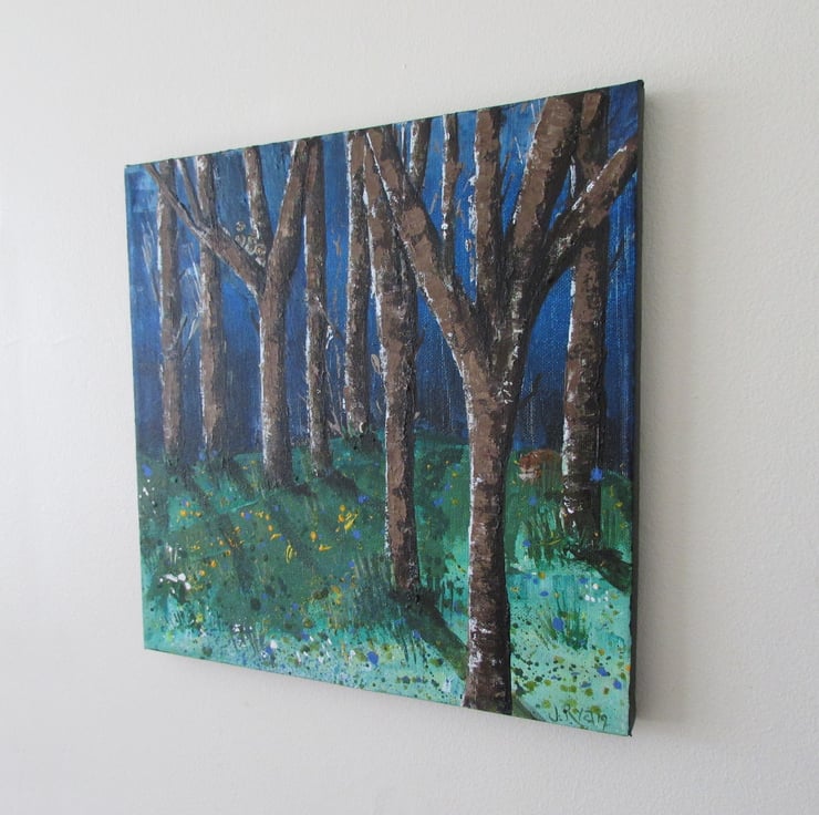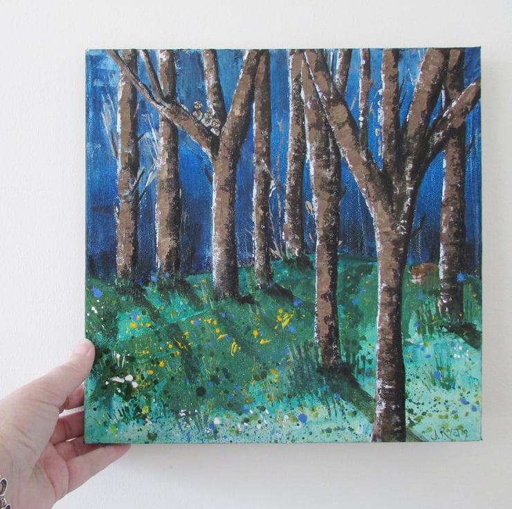 In the Woods, a painting in acrylic paints on stretched canvas.
