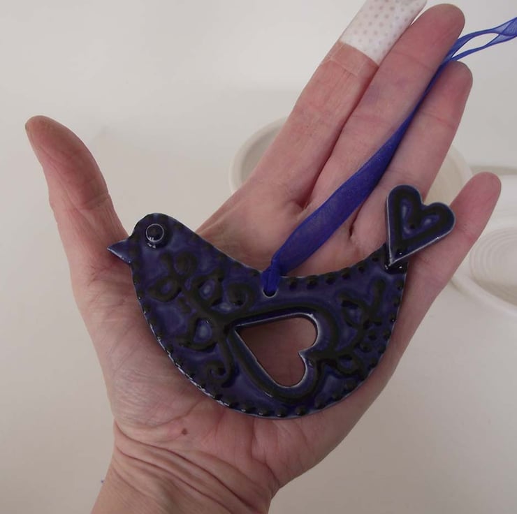 It has then been glazed with a lovely glossy colour and fired again to 1100 degrees.