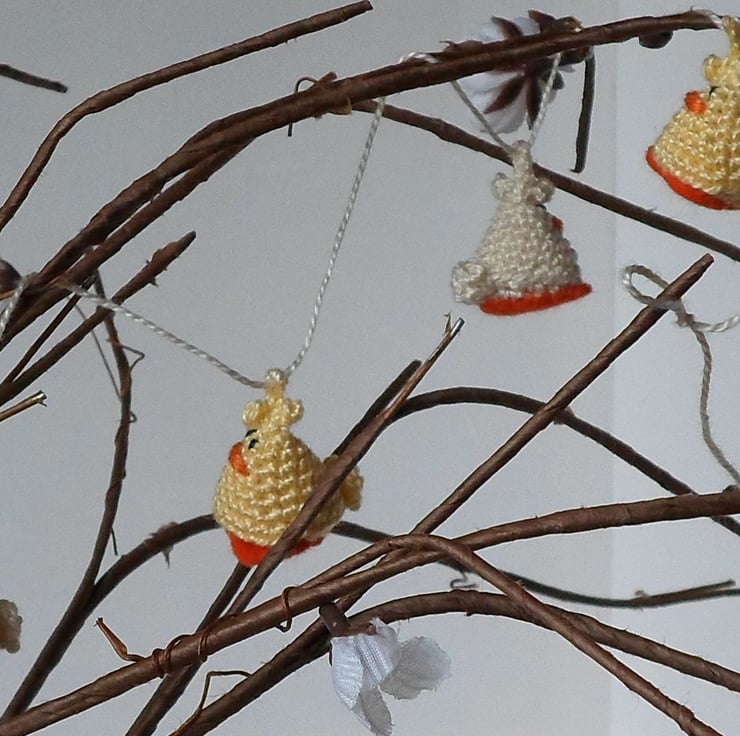 Consisting of thread with 6 mini chicks, the bunting can be simply tied onto branches. Ideal for an Easter gift. Or for Spring home decor.