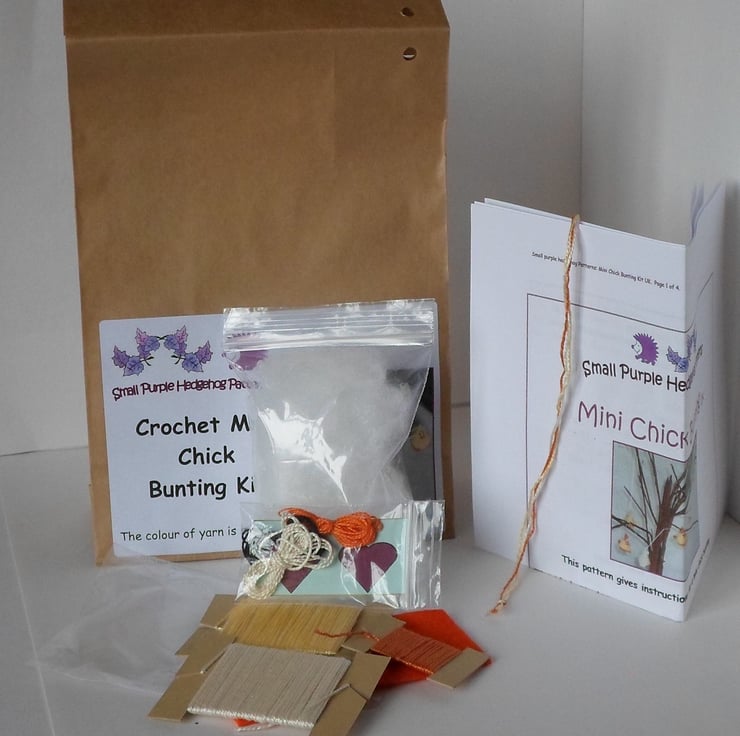 This is a kit version of my mini chick bunting pattern. No need to find all the yarn. Just add a crochet hook and away you go.