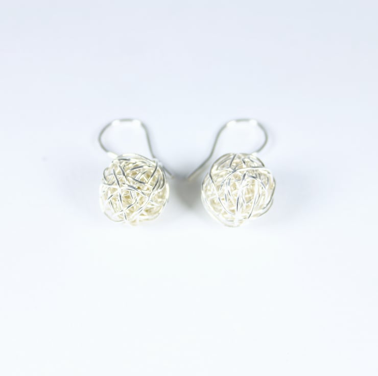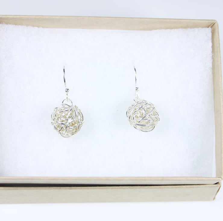 Handmade delicate dropper earrings made from 0.5mm thick silver wire. Each bead is made of 1 metre of silver wire which is wrapped around and through itself, it's a very lengthy and fiddly process but the finished product is worth it. I love how delicate and weighty the beads are and how they sparkle and catch the light.