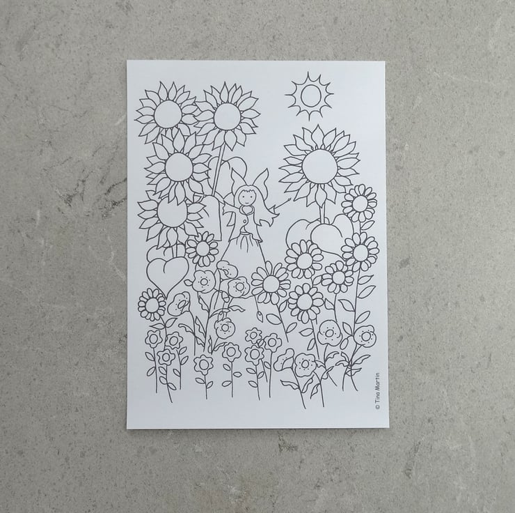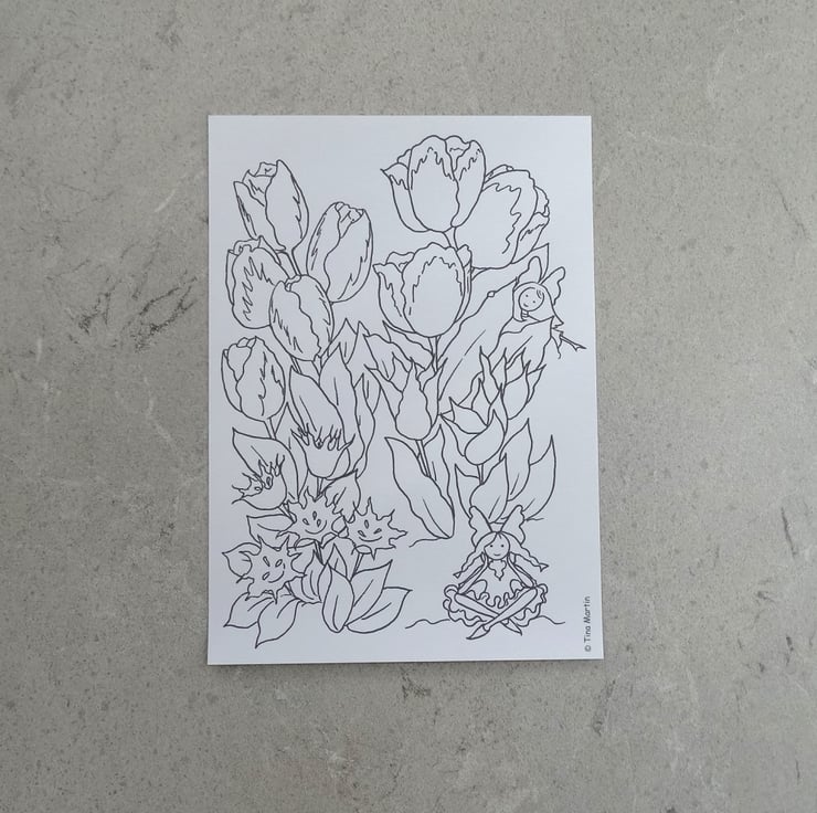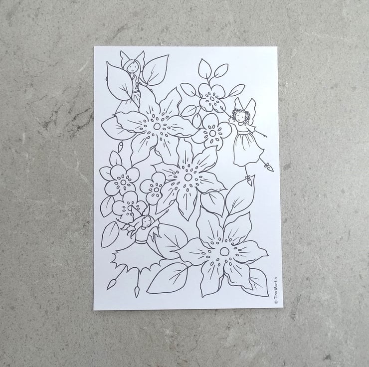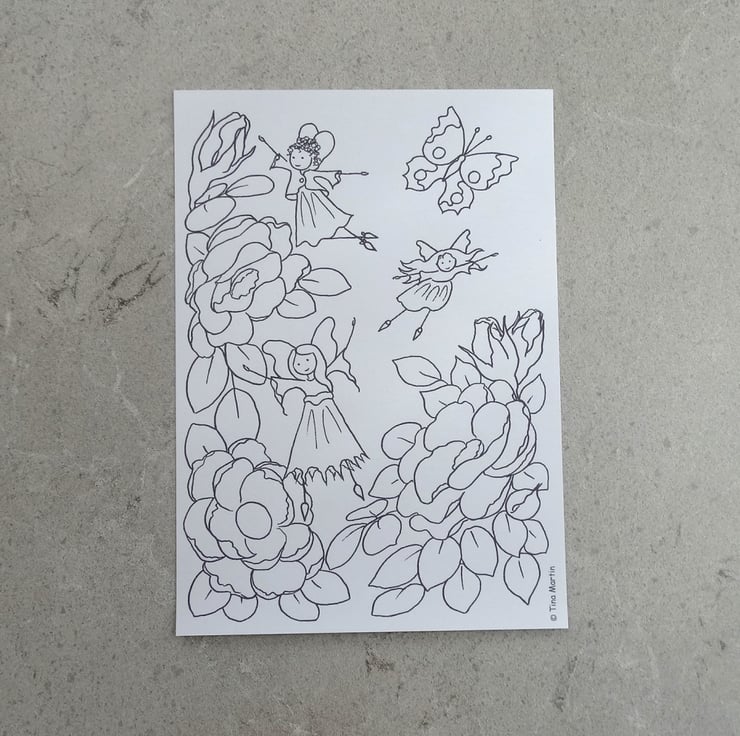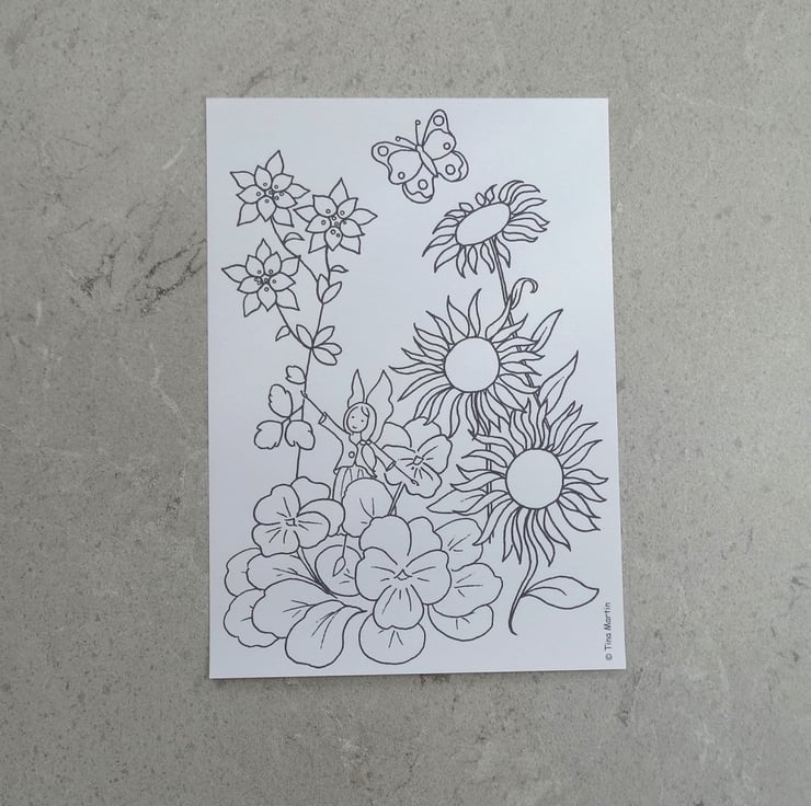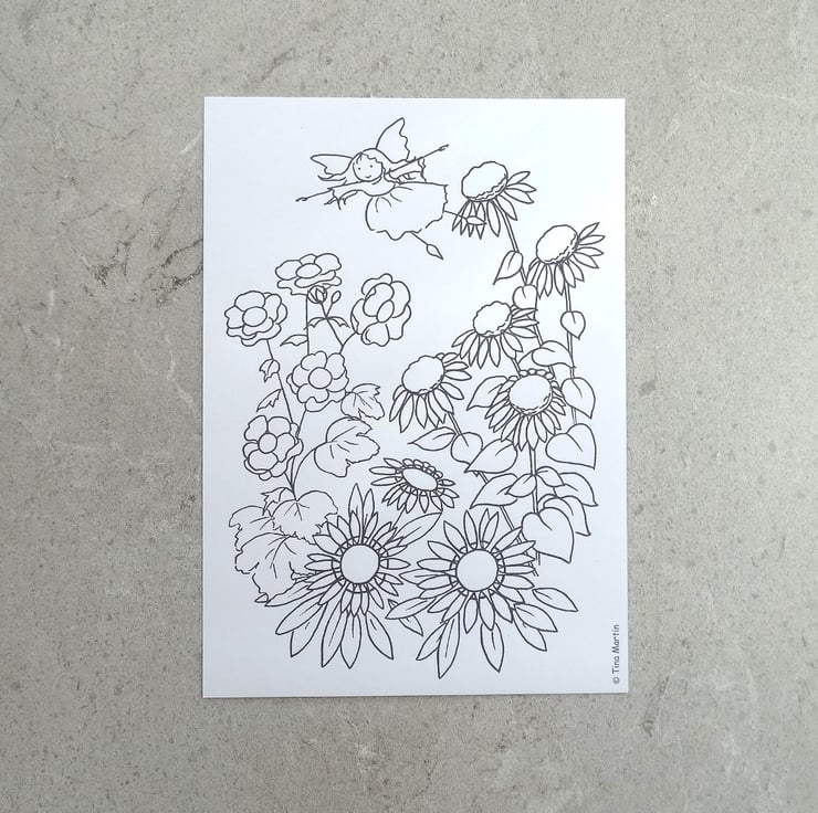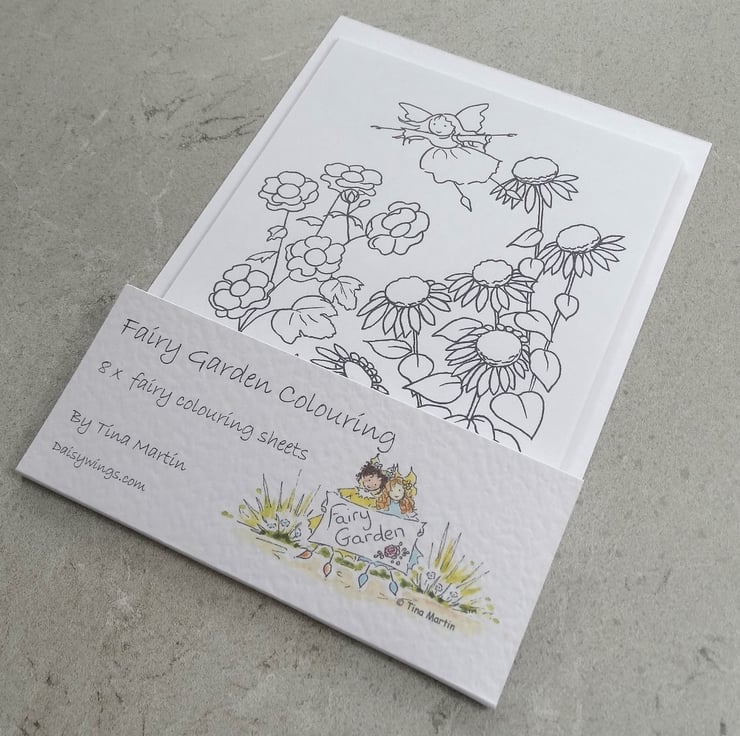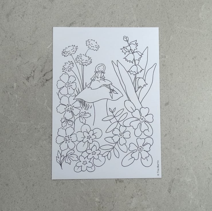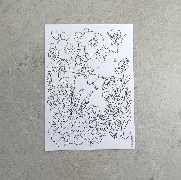 Pack of eight A5 colouring sheets printed using my original fairy garden artwork on to A5 white 120gsm cartridge paper.