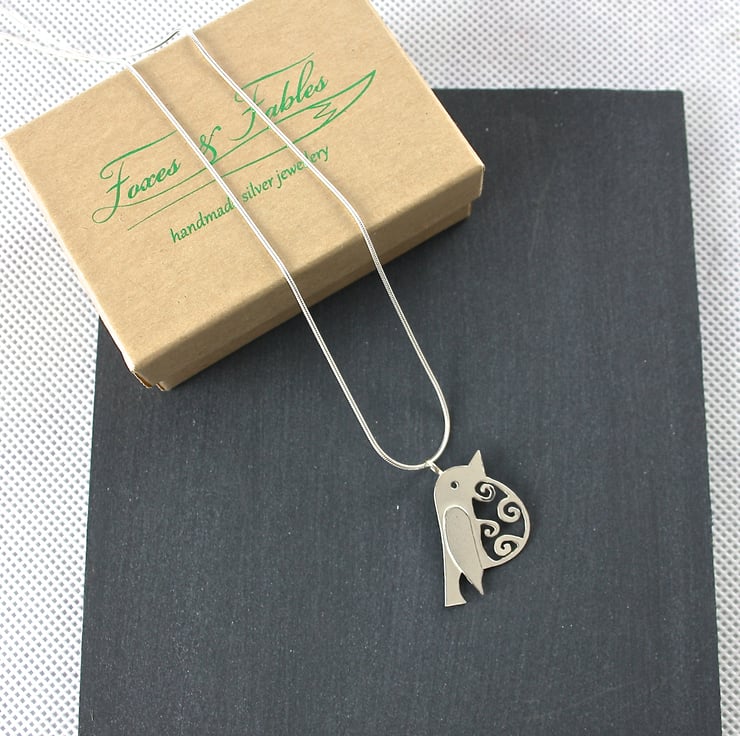 This pendant is based on a print of a Robin I designed for some Christmas Cards. I really like how the filigree gives the impression of a Robins redbreast without the use of colour. Although I originally made this for Christmas it's not overly Christmassy and can be worn all year round, just like Robins can be seen all year.