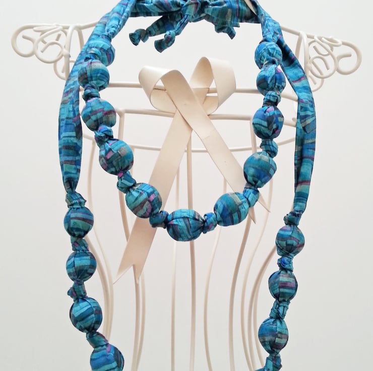 Blue Liberty Print Fabric Necklace - Dr Tulloch book print