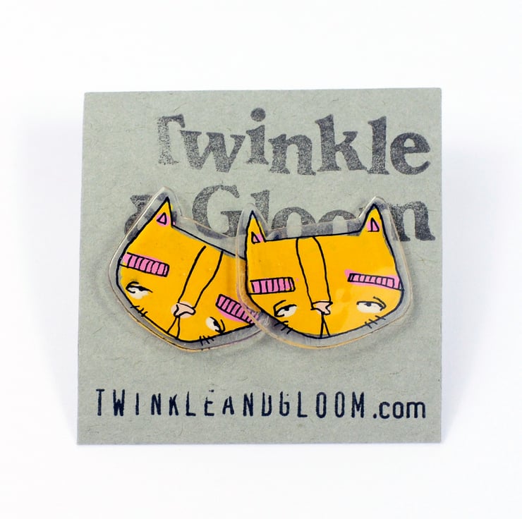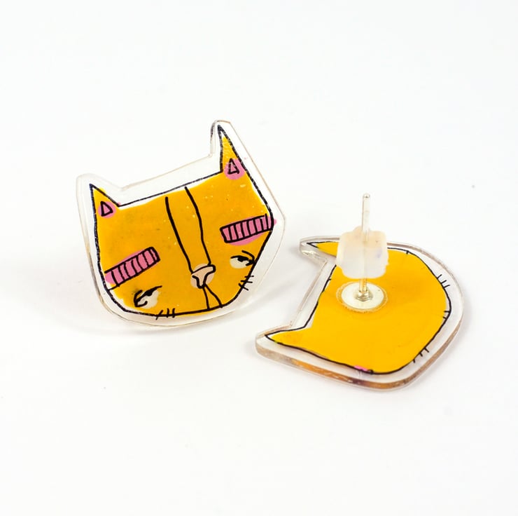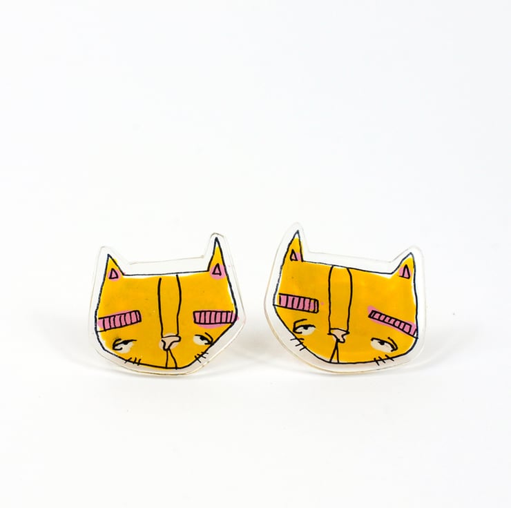 These are a pair of lovely Mustard yellow Kitty ear studs. The kitties are Mustard with lovely pink eyebrows.