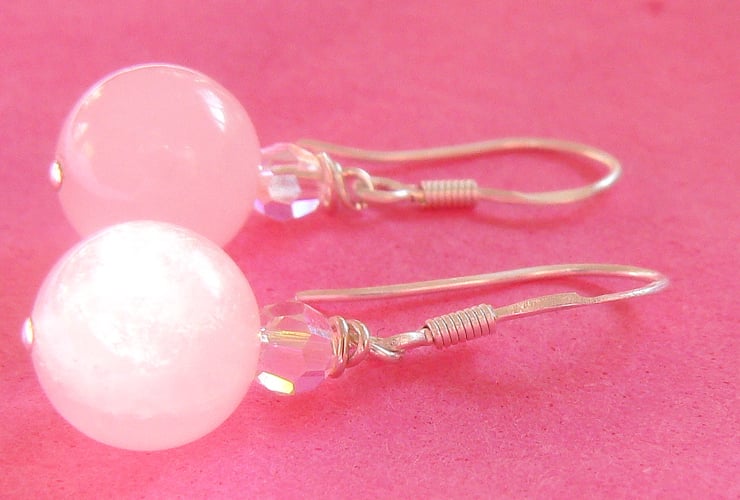 Rose Quartz and Swarovski Crystals Sterling Silver Earrings. 8mm grade A rose quartz earrings with real Swarovski crystals. Free gift pouch.