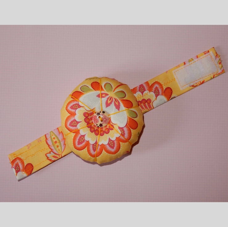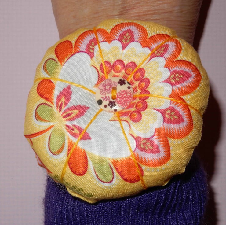 This is so useful for dressmakers, curtain makers etc. as you can wear this on your wrist and keep pins and needles to hand, when doing those tricky jobs.